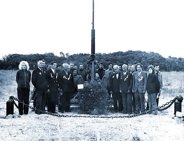 Ветераны "Фрунзе" и садковцы у памятника эсминцу в 70-е годы